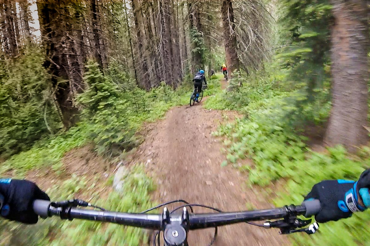 Nach 700 m biegen wir rechts in den Continental Divide Trail, der immer noch leicht bergauf durch Wald und offenes Gelände quert. Wir wählen nicht den Fooses Trail, welcher ebenfalls eine lohnende Alternative wäre, aber kürzer, sondern bleiben auf dem Kamm. Flowige Abfahrten wechseln. Wir passieren den Marshall Pass und erklimmen die letzten Höhenmeter bis zum Abzweiger Silver Creek.
