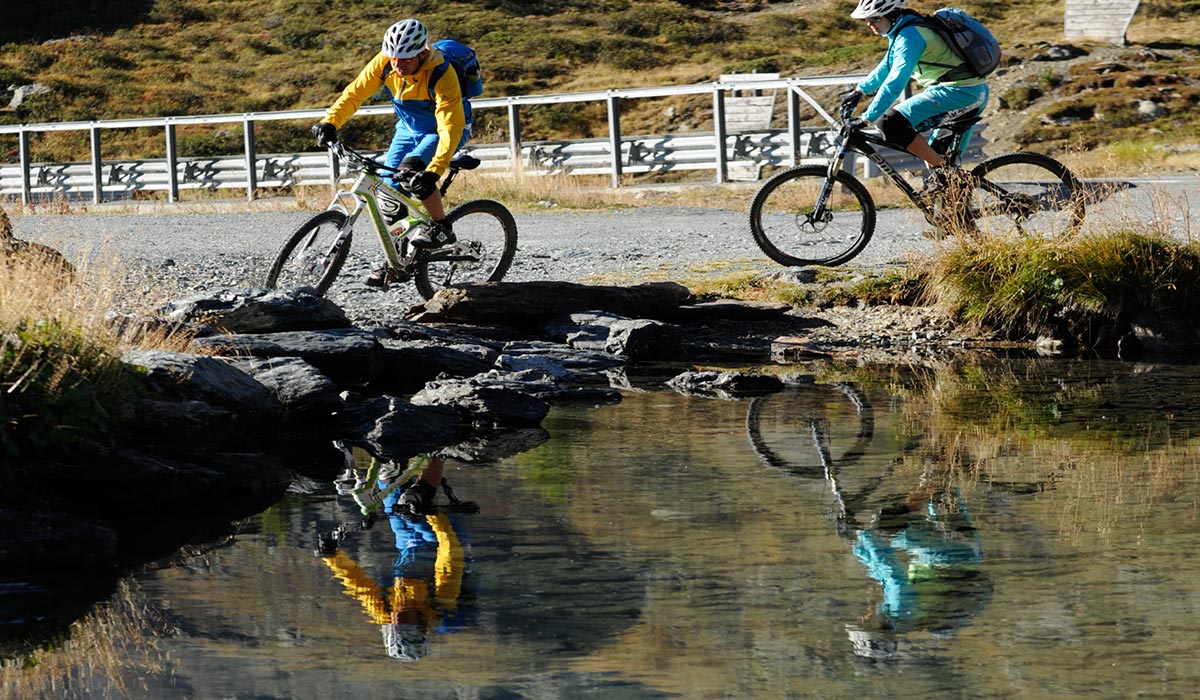 Kurz vor dem Eira Pass fädeln wir in einen Flowtrail, der uns nach Trepalle führt. Mit kleinen Gegenanstiegen geht's weiter talwärts bis zur Brücke des Rez Bachs. Der Trail ins Val Trela führt nun leicht bergauf auf dem Weg Nr. 127 bis ins Val Trela. Dort folgt man dem 136er Trail immer rechts haltend bis zum Grasso delle Vacche, dort links über die Brücke und nochmals kurz bergauf, ehe der Trail am Stausee von Livigno einmündet. Links haltend geht's von dort entlang des Seeufers wieder zurück nach Livigno.
