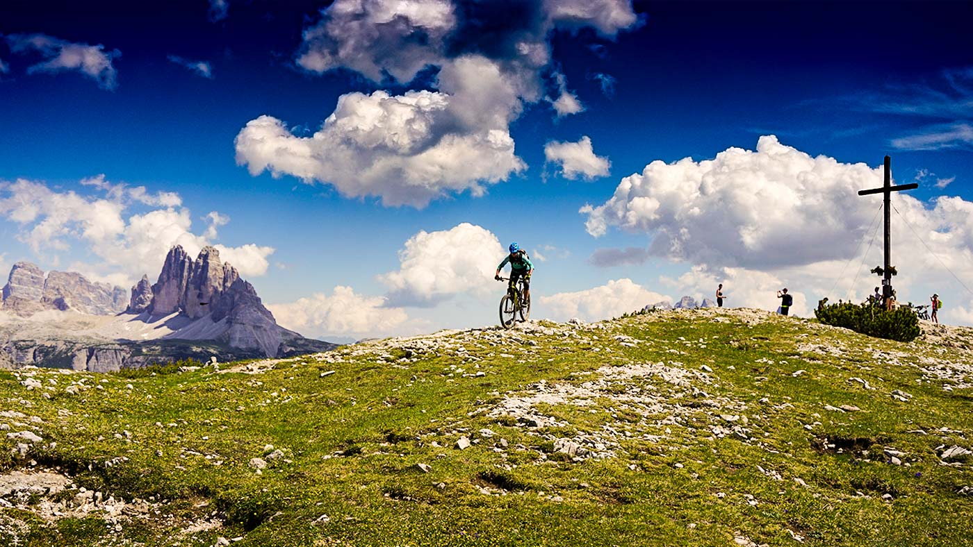 Fahrtechnisch einfache Tour zu den Plätzwiesen und dem Strudelkopf. Es warten tolle Blicke auf Monte Piano und die Drei Zinnen.