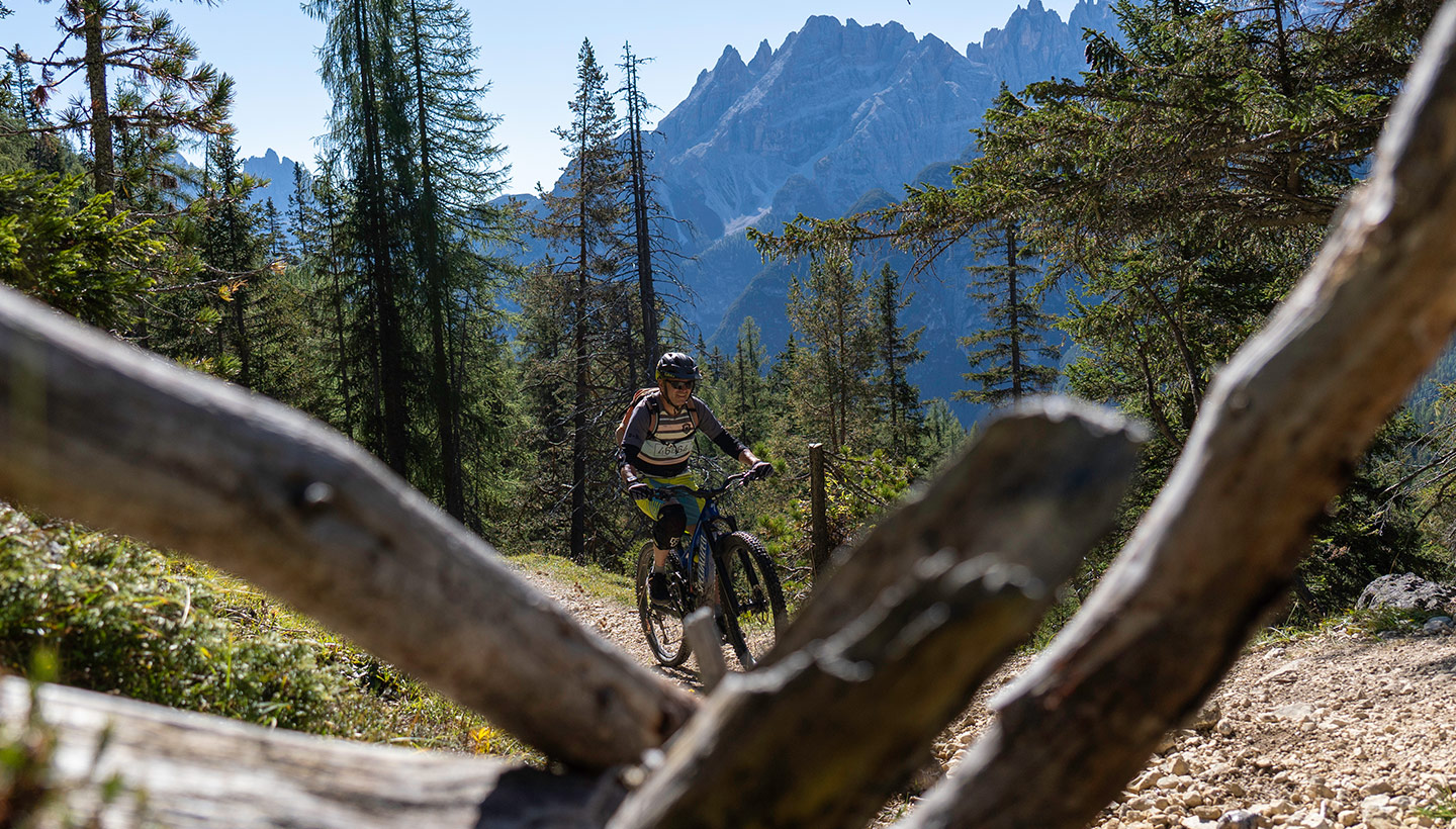 Der letzte Anstieg zum Strudelkopf ist fahrtechnisch ein wenig anspruchsvoller (und damit auch der erste Teil der Abfahrt). Aber es geht hier nur um ein paar Dutzend Meter. Oben am Gipfel genießt man einen tollen Blick auf den Monte Piano und die berühmten Nordwände der Drei Zinnen. Die Abfahrt über die alte Straße bis nach Schluderbach ist problemlos. Wer will, kann hier ein paar Singletrail-Einlagen einbauen und über den Weg Nr. 37 abfahren (S0). Für den Rückweg von Schluderbach bis Niederdorf folgt man dem gut ausgebauten Radweg Richtung Toblach.