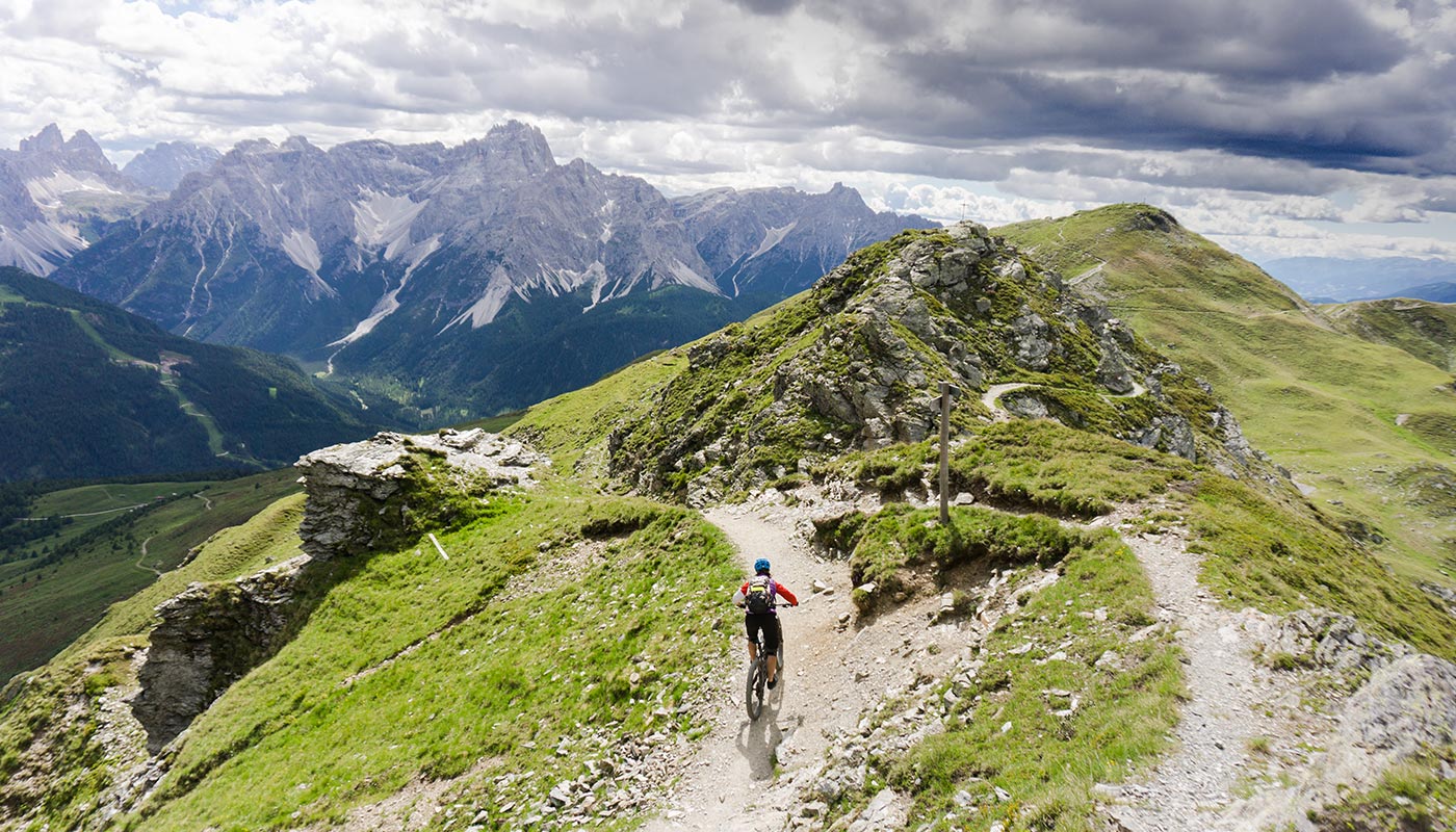 Nun geht's zurück über den Kreuzberg Pass nach Südtirol, unser nächstes Ziel ist die Bergstation der Rotwand Gondel, leider wartet hier keine Singletrail Abfahrt, aber nach 47 km und 2.500 hm kommt die rasante Schotterfahrt recht gelegen, genauso wie die rauschende Fahrt talauswärts bis Innichen und den Drau Radweg nach Toblach.