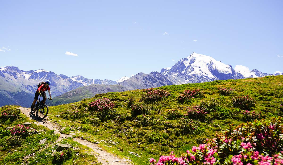Der Tibet Trail bietet garantiert jede Art von Spitzkehre, feinste Trailabschnitte dazwischen und ein traumhaftes Panorama.